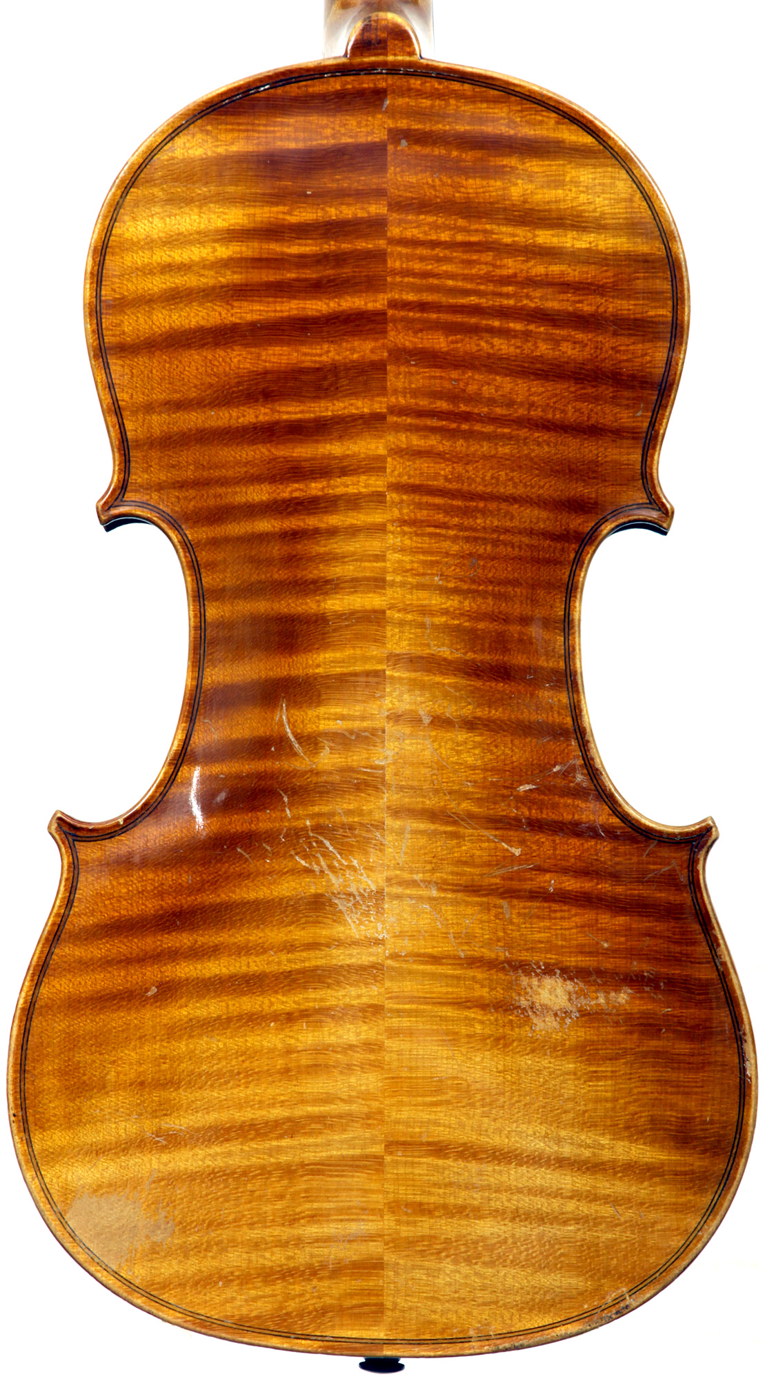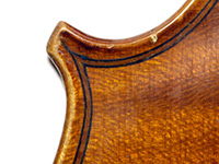 One notices the attractive nicely flamed maple used in the two-piece back, ribs, neck and scroll, along with the lovely pale golden-brown spirit varnish of high transparency that allows one to admire the wood. The top is of high-grade tone spruce with very even medium-to-narrow grain.