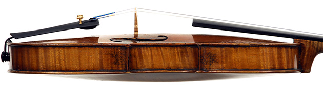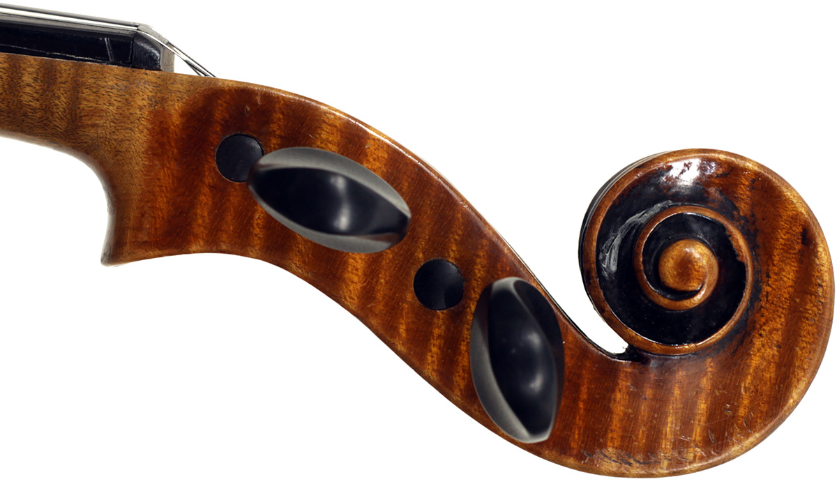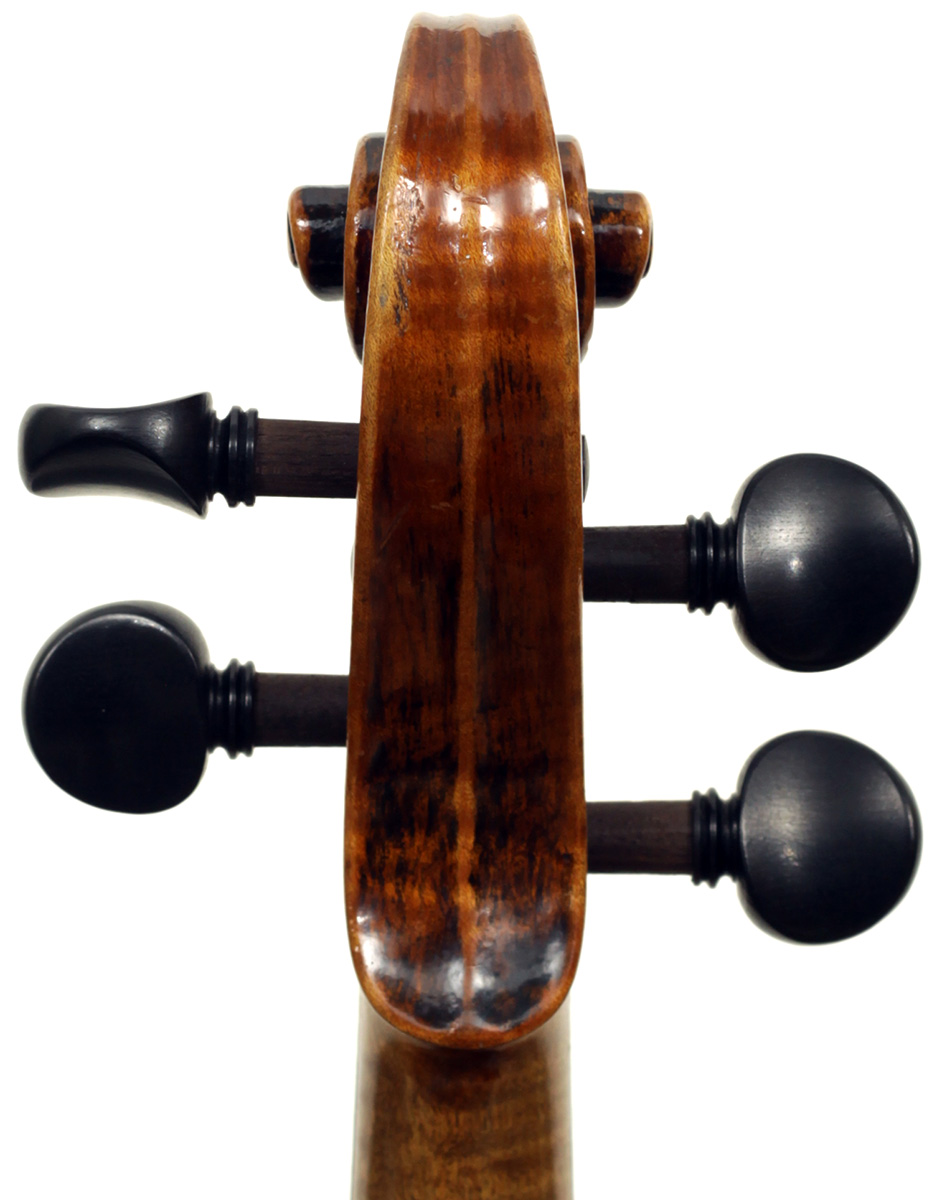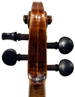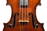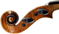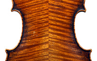 One is struck by a superb selection of materials, notably in the back and ribs. The top is of fine tone spruce with narrow to medium grain. The scroll is refined and balanced and the Fs and purfling show attention to detail.